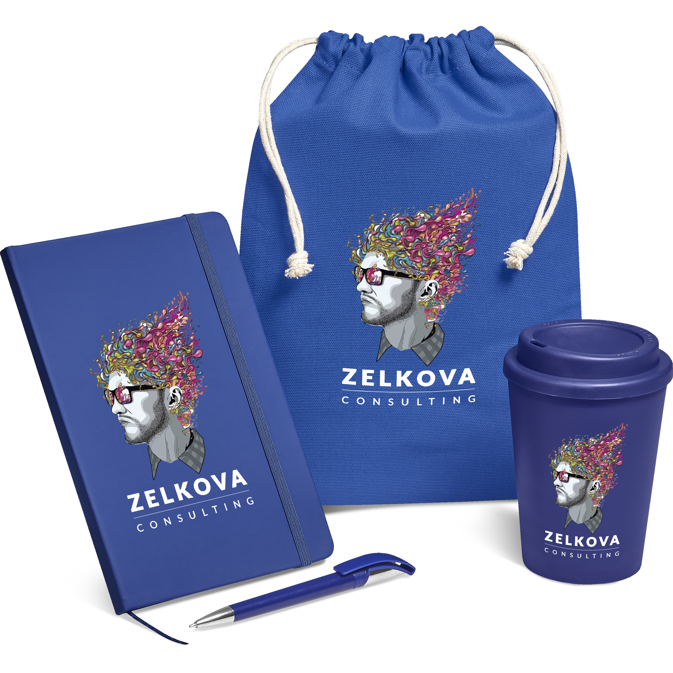 This fun and useful set of a notebook, a pen and a reusable coffee tumbler comes packaged in a handy and strong 220gsm cotton drawstring pouch.