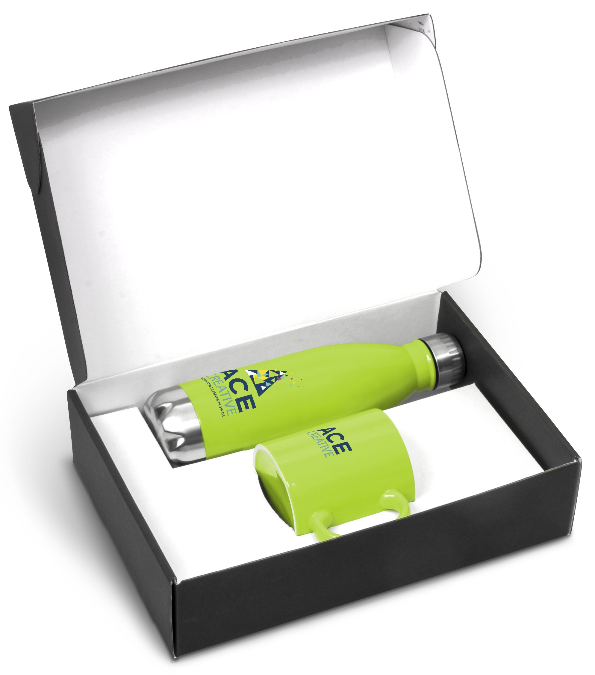 Available in a range of bright modern colours, this gift set will demand attention!