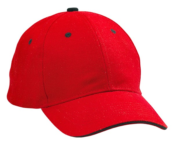 6 panel single contrast sandwich peak. 4 rows stitched sweatband. 6 embroidered eyelets. Self-fabric Velcro strap.Product Dimension: