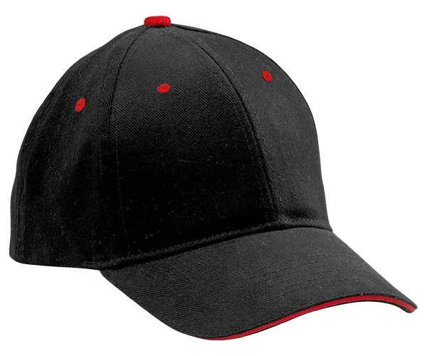 6 panel single contrast sandwich peak. 4 rows stitched sweatband. 6 embroidered eyelets. Self-fabric Velcro strap.Product Dimension: